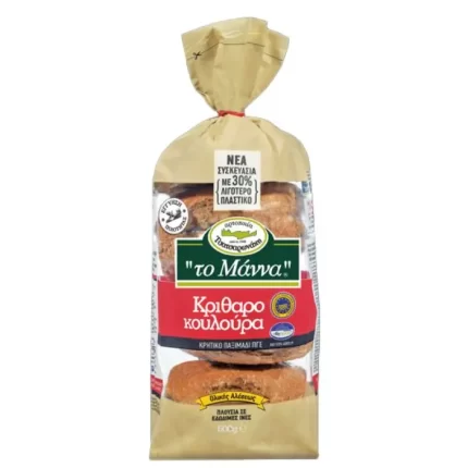To Manna is een Griekse producent die bekend staat om traditionele bakkerijproducten van hoge kwaliteit. Deze kritharokouloura, gemaakt van gerst,