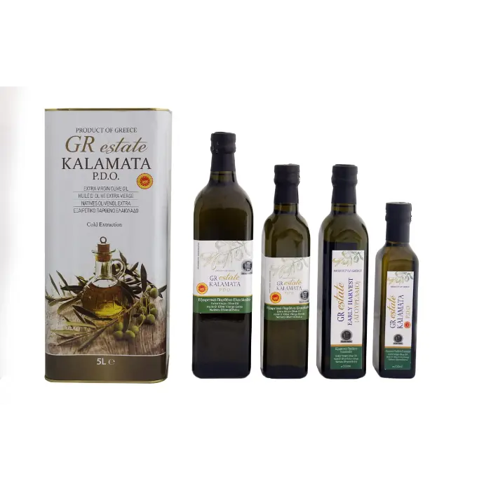 Deze premium olijfolie komt uit Kalamata en draagt de beschermde oorsprongsbenaming (PDO). GR Estate produceert deze olie van Koroneiki-olijven, bekend om hun rijke smaak. De olie heeft een intens fruitig karakter met lichte bitterheid en kruidige tonen. Ideaal voor verfijnde gerechten en salades.