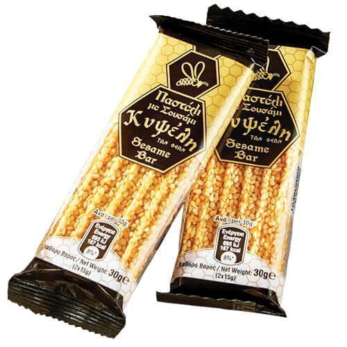 Kipseli pasteli is een traditionele Griekse snack gemaakt van sesamzaad en honing, volgens een eeuwenoud recept. Deze natuurlijke lekkernij heeft een knapperige structuur en een heerlijk zoete, nootachtige smaak. Dankzij de combinatie van pure ingrediënten is pasteli niet alleen smaakvol, maar ook een voedzame energiebron.