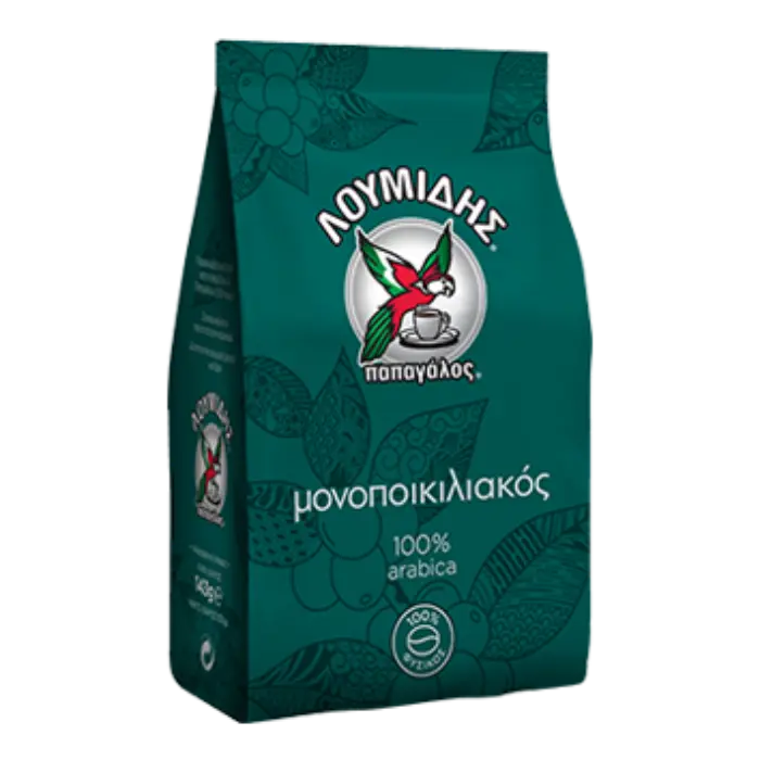 Loumidis® Papagalos® Ekastos® Monovarietale 100% Arabica koffie combineert de zorg van de natuur met de unieke smaakidentiteit van de plantage, en creëert zo nieuwe smaakbelevingen binnen de Griekse koffietraditie.