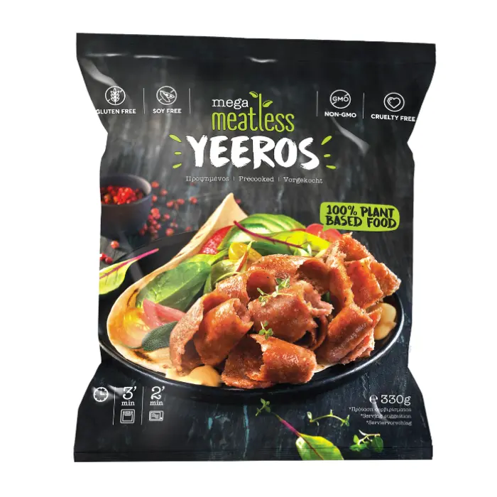 Mega Yeeros Vegan Gyros brengt de authentieke smaak van de Griekse keuken in een volledig plantaardige variant. Deze gyros is bereid met zorgvuldig geselecteerde plantaardige ingrediënten en op smaak gebracht met een traditionele mix van mediterrane kruiden zoals oregano, knoflook en specerijen. Het resultaat is een rijke, kruidige smaak en een sappige textuur die sterk doet denken aan klassieke gyros.