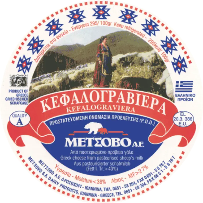 Afkomstig uit de bergregio Metsovo, bekend om zijn traditionele kaasproductie. Deze kefalograviera wordt gemaakt van melk van vrij grazende dieren en heeft een uitgesproken, volle smaak. De langere rijping zorgt voor een stevige textuur en rijke aroma’s. Ideaal voor liefhebbers van krachtige kazen.