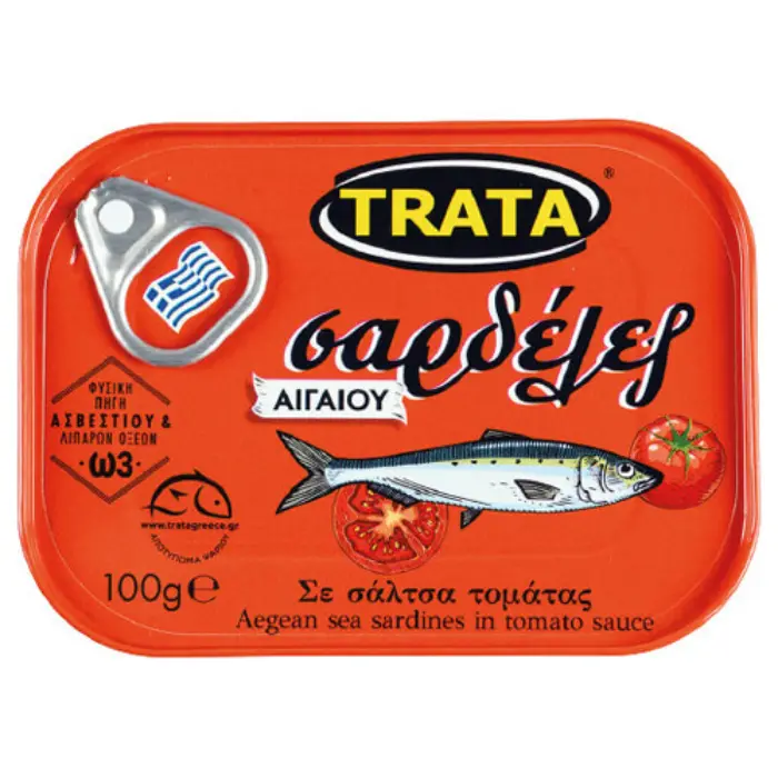 Deze sardines van Trata worden bereid in een rijke tomatensaus die de volle smaak van de vis perfect aanvult. De sardines zijn mals en smaakvol, terwijl de saus een lichte zoetheid en kruidigheid toevoegt. Ideaal als snack, op brood of als onderdeel van een mediterrane maaltijd.