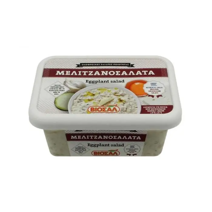 Viosal melitzanosalata is een klassieke Griekse auberginesalade met een zachte, rokerige smaak. Gemaakt van gegrilde aubergine, olijfolie en kruiden, wat zorgt voor een romige en licht pittige dip. Ideaal als spread, bijgerecht of onderdeel van een mezze. Een authentiek product dat de mediterrane keuken perfect weerspiegelt.